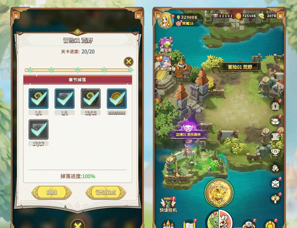 在职业选择上前期不用过于执着,随便选一个,如果感觉到不合适可以通过不朽之树解锁其他,直接更换就可以。在主要玩法上依然是以挂机为主,前期需要先手动操作通关,然后就通过挂机自动战斗来获取大量资源,所攻略关卡越多,解锁剧情和有趣玩法也就越丰富。这样设计可以将大家从繁琐重复劳动中解决出来,即使没有时间经常在线,也不影响战力提升。