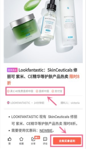 2、随便点进某一条优惠,就能够看到折扣详情、该网站是否支持包邮+支付宝,下拉到最底部还有下单攻略。