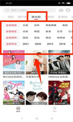 1、进入应用推荐页面,选择港台剧分类栏目进入相应内容专区。