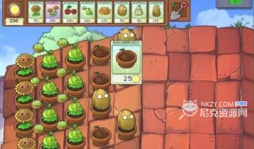 2、由于在房顶,所以直线的豌豆射手不能用了。