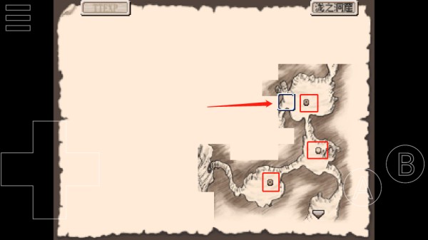 8、移动方框至“倒三角”,退出冒险回到城镇