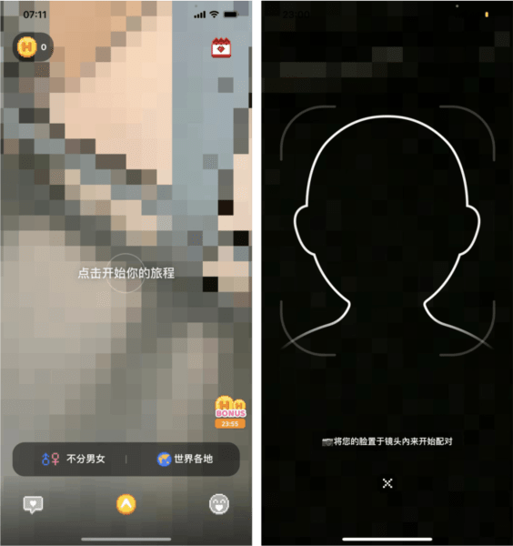 视频匹配,需要将自己的脸至于镜头内才可开始