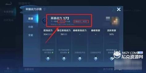 5、在英雄战力下面,玩家可以看到战力地区和战力值。