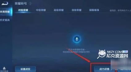 3、玩家进入“荣誉称号”后,选择右下角的”战力详情“。
