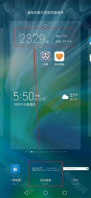 5、滑动应用图标找到【运动健康】,点击即可添加到桌面上,位置不满意的话还可拖动改变。