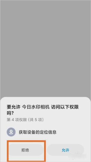 3、然后我们打开今日水印相机应用,在进去过程中将“定位权限”关闭。