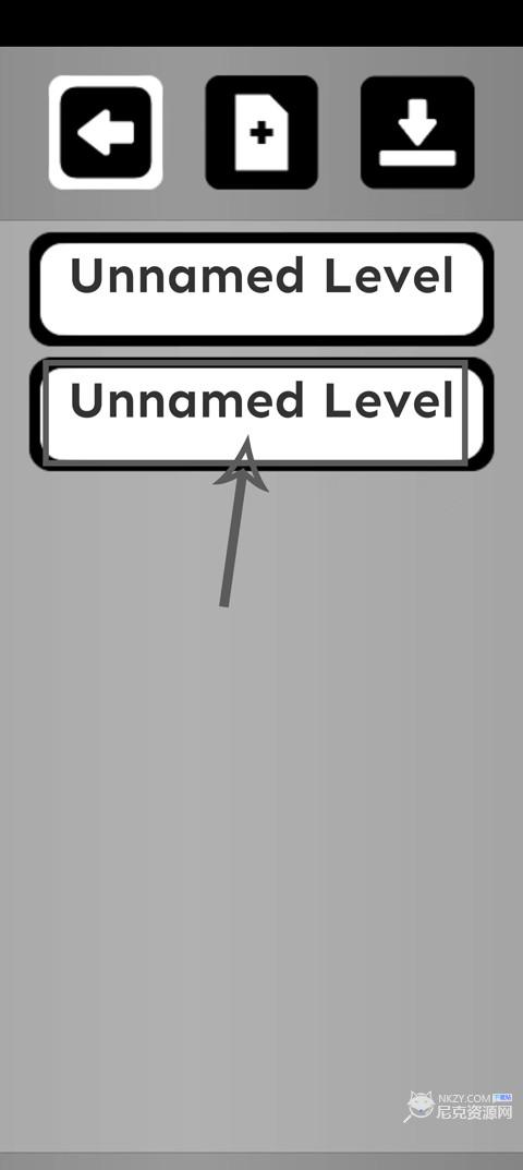 1、在本站下载安装游戏之后,打开游戏来到首页,点击开始按钮来到,饭制页面,刚进入游戏没有关卡,这个时候我们要先自己制作一个关卡出来,点击加号;