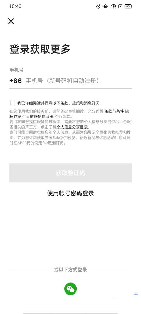 1、下载安装好Farfetch海淘中文版,打开通过注册登录;