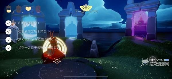 找到黄色人影,与它们互动 收集“光之翼”,我们的 飞行技能就可以得到 升级――斗篷背后 星星的数量就代表我们的飞行级别。