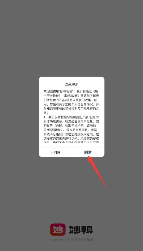 1、初次使用需阅读平台服务条款与隐私政策,确认后点击同意按钮进入应用。