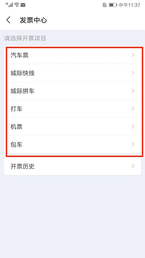 4、然后选择要开发票的行程,