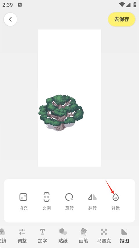 4、抠图已完成,点击背景;