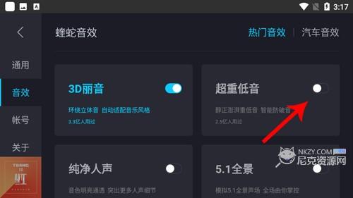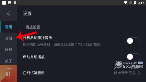 2、点击左边的音效选项