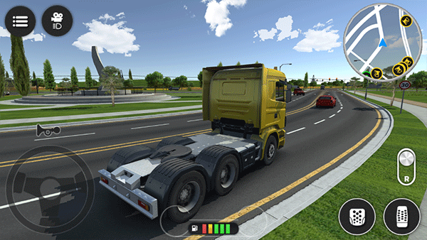 4、操作方式非常简单,左边控制方向盘,右边控制油门、刹车、倒挡等等;