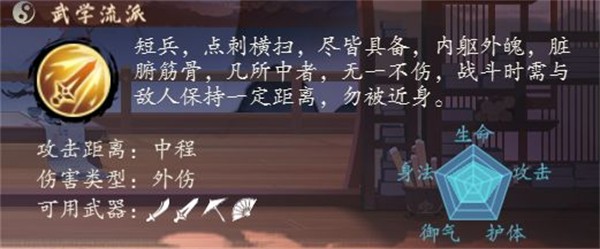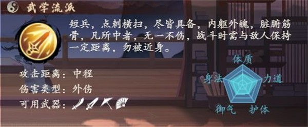 南宫诗剑作为短兵侠客,善用剑法,可以使用剑、伞、扇、刀等短兵流派武器。修习的功法也需要为短兵流派,江湖中常有传闻,南宫诗剑常在月下饮酒舞剑,姿态飘逸潇洒,世间鲜有敌手。相信在各位掌门的培养之下,南宫诗剑的飘逸之姿,能展现无遗!