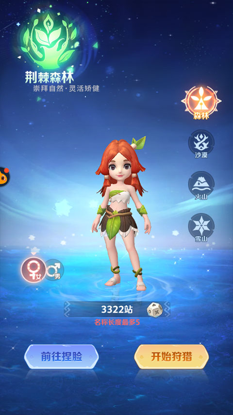3、新手玩家可以选择一个属性,森林、沙漠、火山以及雪山,设置昵称。