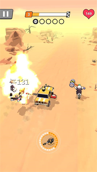 2、一直点击屏幕汽车就会向前走,走到敌人边上会自动攻击