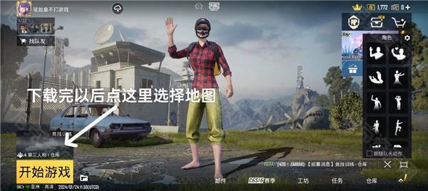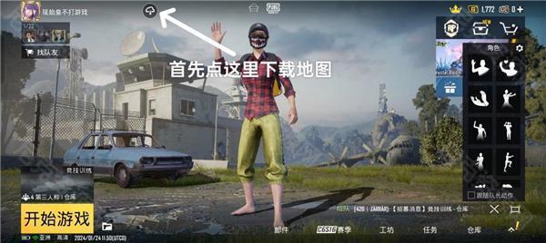 1、打开PUBG国际服手游,首先点这里下载地图。
