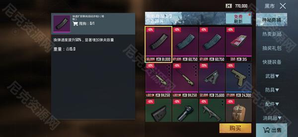 6、在地铁逃生模式内开始游戏之前,我们需要去黑市补充物资,需要购买的物资包括武器、防具、配件以及消耗品。