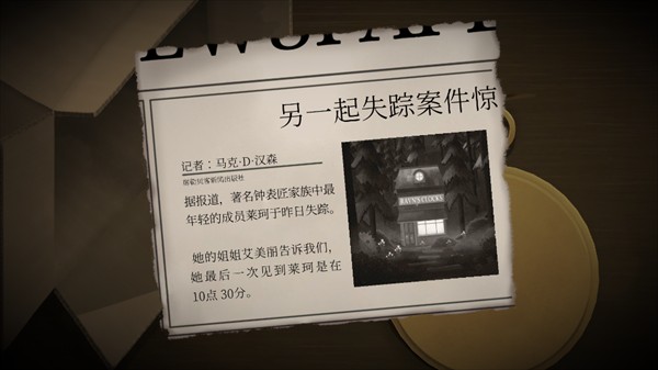 2、向下滑动,会出现半份报纸和一块怀表。玩家一:得知时间在十点半玩家二:得知在一个半小时后。