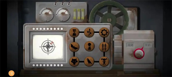 22、第三章时间来到1937年,第一个场景变了,所以我们不需要去看时间,注意:不要随意点击灯泡!!!来到钟表店,虽然是关灯状态,但是我们在第二章有了钥匙,可以随意进出。这次玩家一和玩家二的场景一致,进入钟表店后向下滑动,看到一台发电机,左侧的显示屏旁边有九个按键,游戏将它们从1~9依次编号,无论如何变换位置,1~9的位置是不变的,所以当它每次转动后,每次的1都不是一个按键。右侧开始后,玩家一率先有提示,之后便是玩家二有提示,一共18次,每人9次。