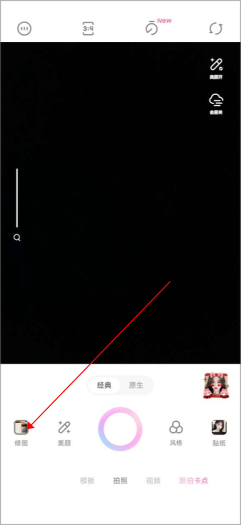 1、首先我们打开一甜相机app,点击左下角的修图。