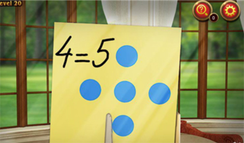 1、点中间桌子,收取胶带。点左边纸签,再点一次记录下上面的数字提示,4=5,及蓝色圆点提示