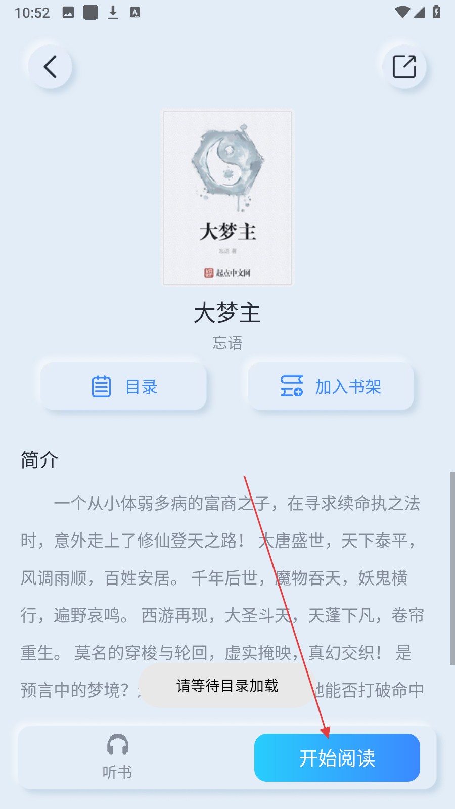 3、在书籍详情页面,点击【开始阅读】,进入阅读界面。