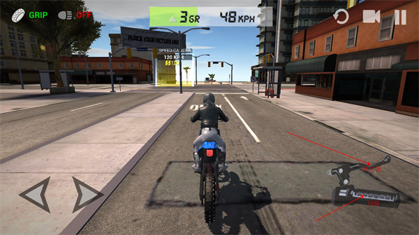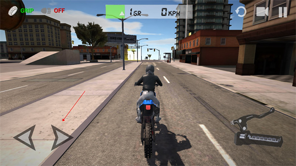 1、下载安装好终极摩托车模拟器,运行游戏,左边可以控住方向;