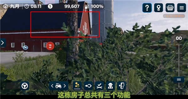 2、这个时候就可以看到一栋红色的房子,房子功能有三种,先不多说,快把车开过来