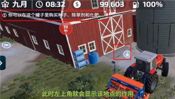 3、如果是在琥珀地图的话,开过来就很近,如果不是开过来可能要一点时间耐心等待一下,开到这个有光标的地方会出现提示,可以购买种子,化肥,除草剂等