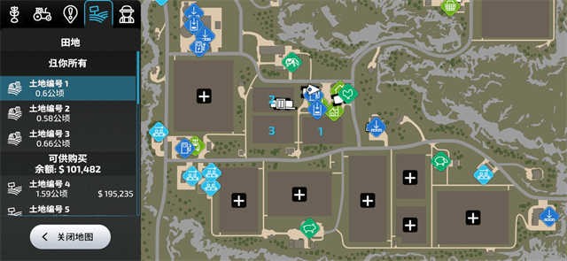 农田购买:在地图→左边分页第四栏→下滑可购买,并且在地图中会显示其位置。