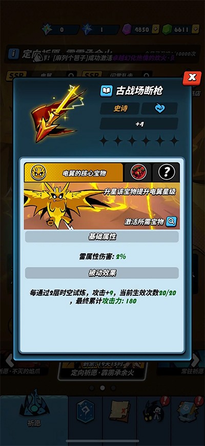up池抽:直接去梭哈电翼池子,记住,定向一定要选【古战场断枪】,这玩意儿才是召唤电翼的,另一个是技能。如果你是小R以下的,在没抽到这个枪之前,有多少抽多少,抽到了就可以停手了。如果运气真的好,也可以抽个技能。玩个2-3天,应该都能嫖到电翼。不要想着屯券等下一个卡池,不一定啥时候开呢,而且下一个池子是UR的火龙,也必须要有【古战场断枪】,绕不过的。