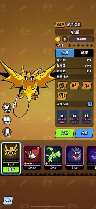 等级:就是吃鸡腿可以升级的地方,这个藏得比较深,在【养成】—【升级】,能升就升,蚊子腿也是肉。很多功能要到达等级才解锁。比如龙的羁绊链接啥的。