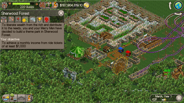 过山车大亨手机版是一款模拟经营类的游戏,很容易就可以快速进行体验,玩家将作为游乐场的老板对其中的内容进行管理,根据自己的想法进行过山车的设计,更好的开始进行体验。整体内容非常的精彩,让你可以感受到独特的游戏乐趣。其中还有多种不同的工具可以使用,为你带来具有挑战性的环境内容,通过合理进行出售可以让你在其中赚取到更多的资金,在这里可以感受到独特的体验。