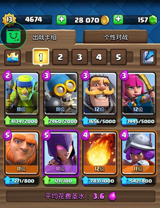 1、很多的卡牌可以自由组合,升级你的角色卡,注意自己圣水资源然后放置你的卡牌。