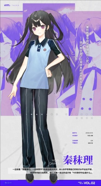 高三(六)班公认的学霸。擅长文综和数学,但似乎是英语苦手。喜欢动漫,二次元手游和RTS游戏,据说也是六国杀重度玩家。