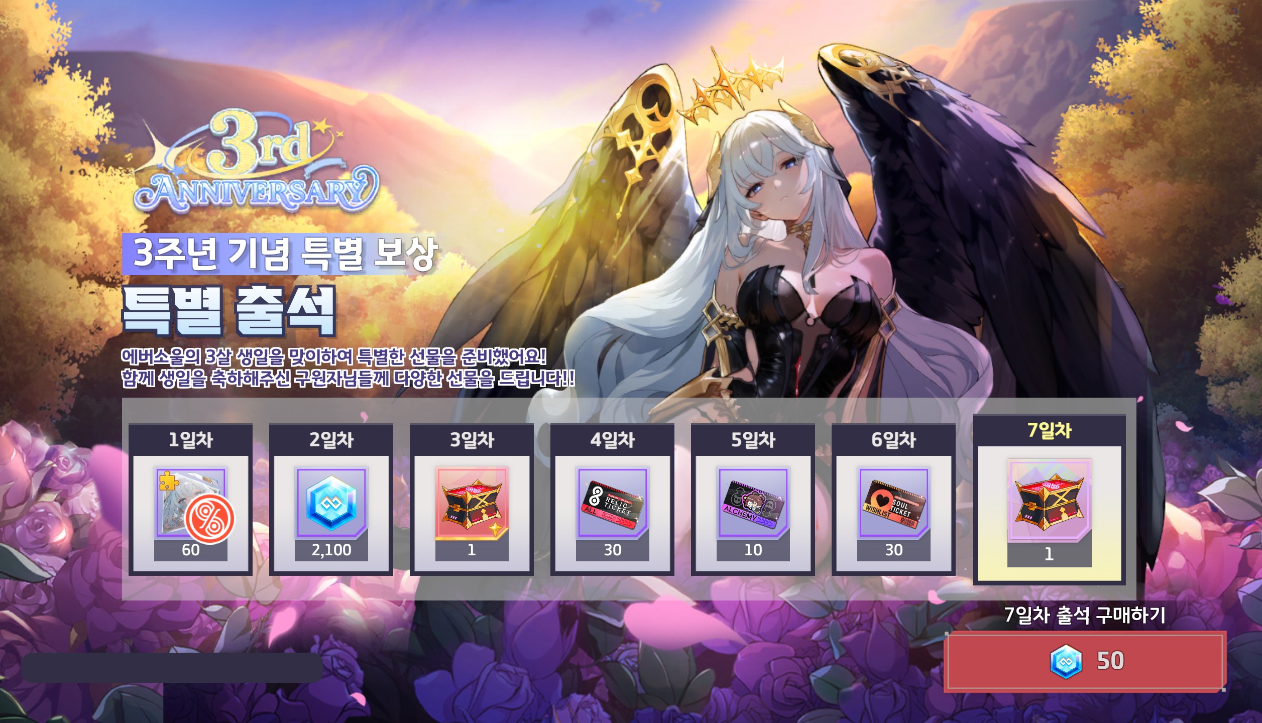活动期间登入即可获得签到奖励,内容包含全新精灵「尤里娅(阿巴顿)」、史诗精灵自选召唤箱子、三周年纪念礼品套装、月卡试用包 等,参与活动也能额外获得包含新精灵「尤里娅(阿巴顿)」在内的丰富奖励。