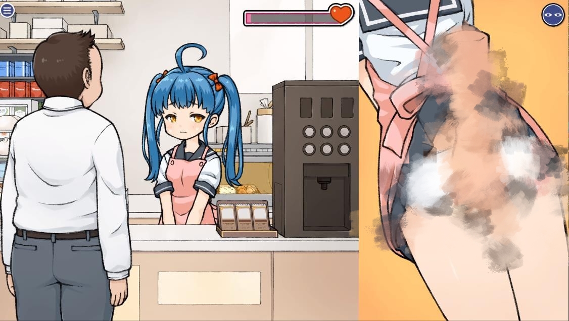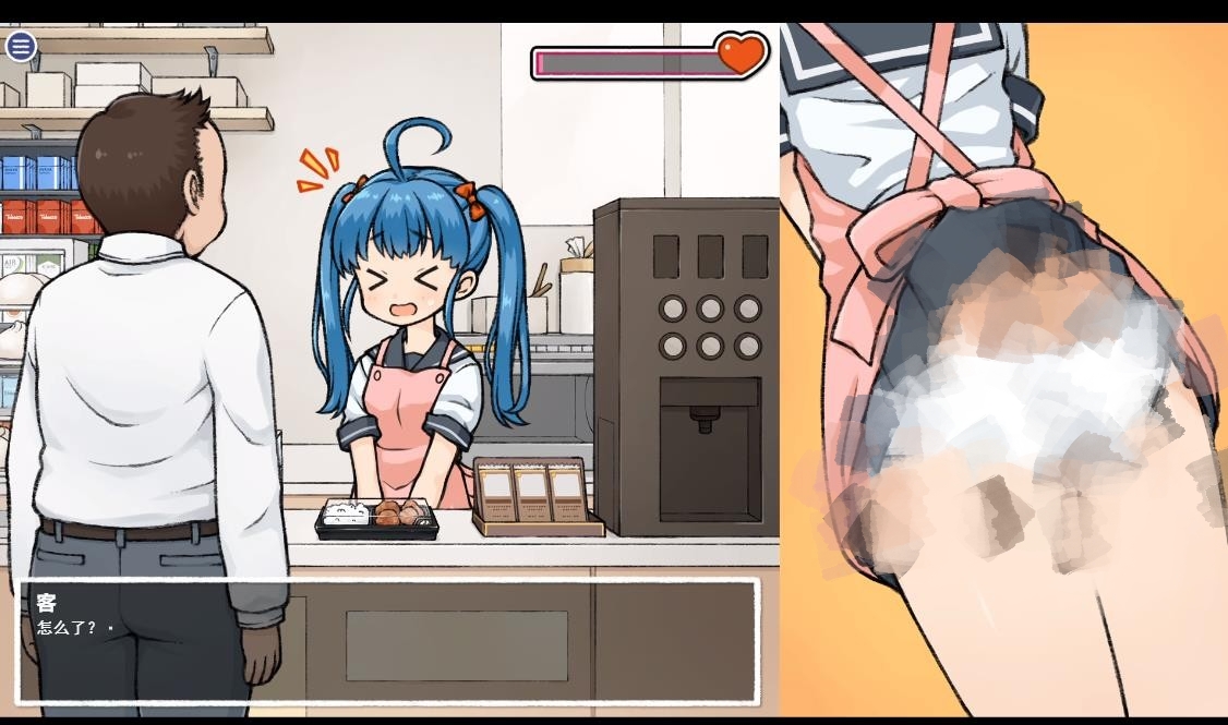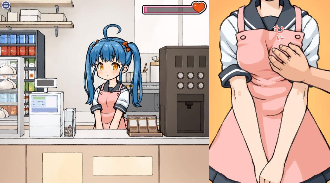 这是【おもち工房】在2023年4月1日发布的一款互动触摸SLG。内容是男主作为透明人去对便利店中的双马尾妹子进行H恶作剧。由浅入深的玩法,从一开始的小触碰到最后的本垒一共8个阶段。